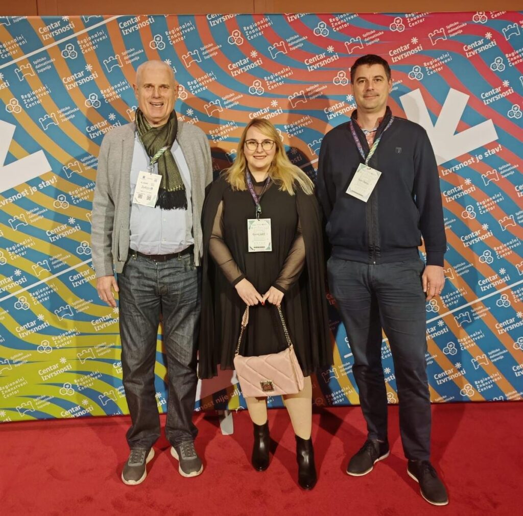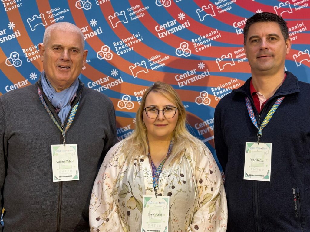 Na ovogodišnjoj konferenciji ENTER ( 04. – 06.12. 2025., Split), jednom od najznačajnijih događaja posvećenih suvremenim obrazovnim praksama, razvoju kompetencija učenika i razmjeni stručnih iskustava, održana je sekcija „Srednjoškolski koktel 3: Modularna nastava“ koja je okupila nastavnike i stručnjake iz različitih srednjih škola kako bi predstavili svoje uspješne modele poučavanja. Sekciju je vodila Natalija Palčić, prof. izvrsni savjetnik, a izlaganja su se tijekom popodneva nizala u dinamičnom, inspirativnom tonu. Među posebno zapaženim nastupima istaknulo se predavanje osnivača i profesora naše škole Vitomira i Ivana Tafre koje je pokazalo kako se inovativne metode nastave mogu primijeniti u različitim predmetnim područjima, ali s istim ciljem, osposobljavanjem učenika za vođenje mikro, malih i srednjih poduzeća.