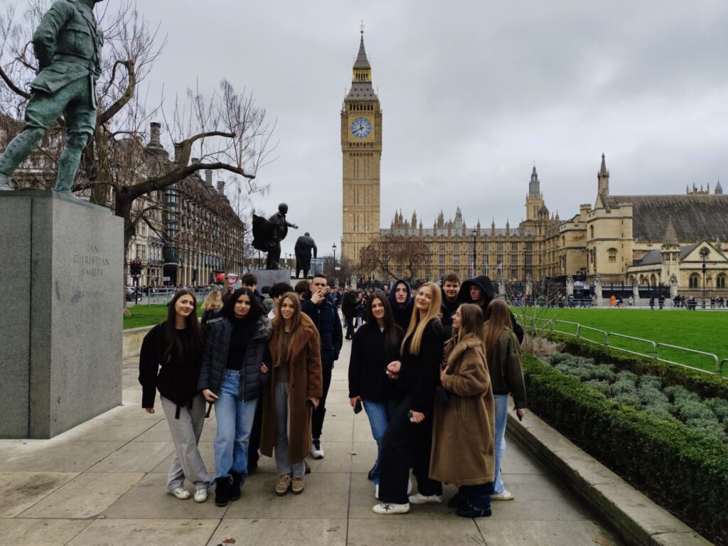 Vrhunac tjedna bio je posjet glavnom gradu Ujedinjenog Kraljevstva – Londonu. Obišli smo Buckingham Palace, vidjeli Big Ben i Houses of Parliament, a šetnjom uz rijeku Temzu stigli do poslovne četvrti Canary Wharf, često nazivane „londonskim Manhattanom“. Učenici su imali priliku doživjeti veličinu i dinamiku jedne od najvažnijih svjetskih metropola.