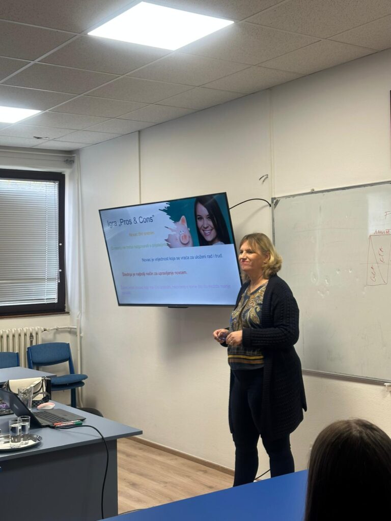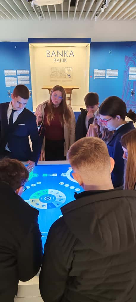 Učenici 4.a i 4.b razreda posjetili su Muzej novca Hrvatske narodne banke – Moneterra, gdje su se upoznali s razvojem hrvatskog i svjetskog novca te funkcijom središnje banke u nacionalnom gospodarstvu. Treći razredi boravili su u Hrvatskom državnom arhivu, gdje su kroz stručno vodstvo otkrili kako se čuvaju i obrađuju povijesni dokumenti te zašto je arhivska građa ključna za razumijevanje povijesti i identiteta. Učenici 1.c, 2.c i 4.c razreda posjetili su Ured Europskog parlamenta u Zagrebu, gdje su u organizaciji Centra Doživi Europu kroz interaktivne sadržaje učili o funkcioniranju EU, europskim vrijednostima i procesima donošenja odluka. Paralelno s posjetima navedenim ustanovama održana su i gostujuća predavanja i radionice za učenike prvih i drugih razreda ekonomskog usmjerenja, koja su obogatila njihov redovni kurikulum. Prvi razredi sudjelovali su u radionici o poduzetništvu i rizičnom kapitalu, gdje su uz voditelja Filipa Špiranca raspravljali o tome kako izgleda pokretanje startup projekta i što znači financiranje iz fondova rizičnog kapitala. Učenici drugih razreda slušali su predavanja o dobrim financijskim navikama, koja je vodila Sara Zadravec iz Erste banke, uz praktične primjere štednje, odgovornog trošenja i sigurnosti u online plaćanju.