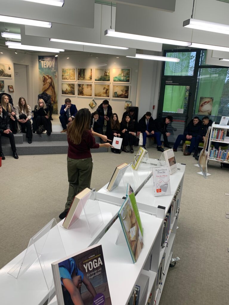 Po našem dolasku, ljubazno nas je dočekala voditeljica radionice Sara, koja nas je smjestila u knjižnicu instituta. Ondje nam je detaljno objasnila čime se Goethe-Institut bavi te koja je njegova uloga u promicanju njemačkog jezika i kulture. Pokazala nam je bogatu zbirku knjiga, časopisa i drugih edukativnih materijala dostupnih u njihovoj knjižnici, a zatim nam je objasnila i postupak učlanjenja za sve one koji bi željeli koristiti njihove sadržaje.