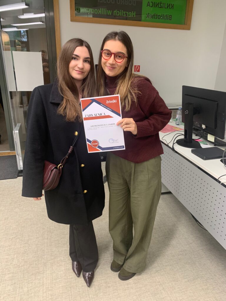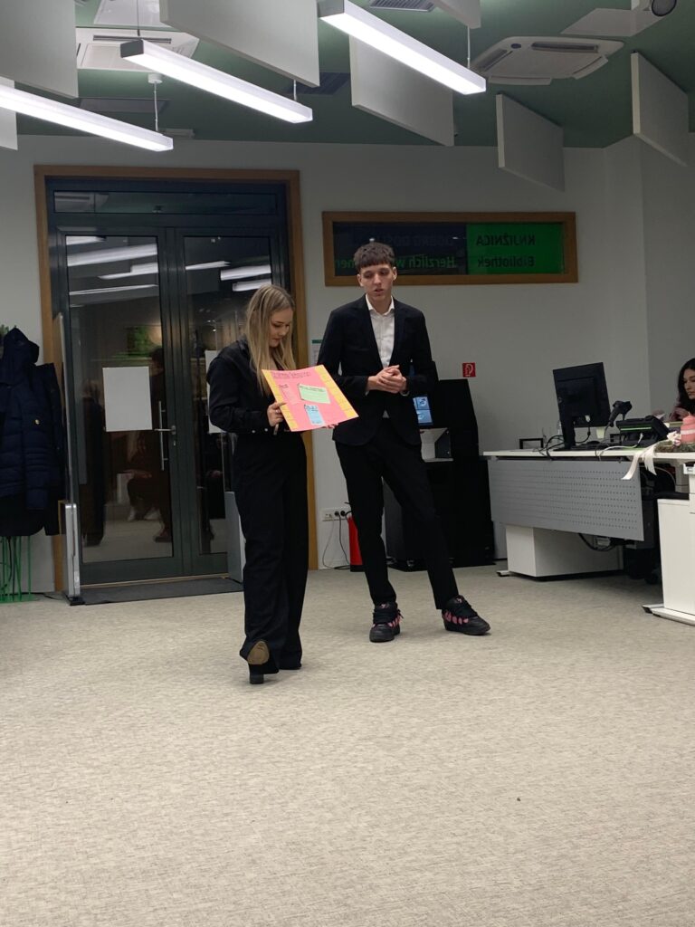 Na kraju smo zahvalili voditeljici i Goethe-Institutu na gostoprimstvu te im uručili zahvalnicu i jedan proizvod iz naše humanitarne akcije kao znak zahvalnosti. Ovaj posjet bio je poučan, zanimljiv i koristan, a učenici su stekli nova znanja o održivosti, odjevnim oznakama i kulturnoj ulozi Goethe-Instituta.