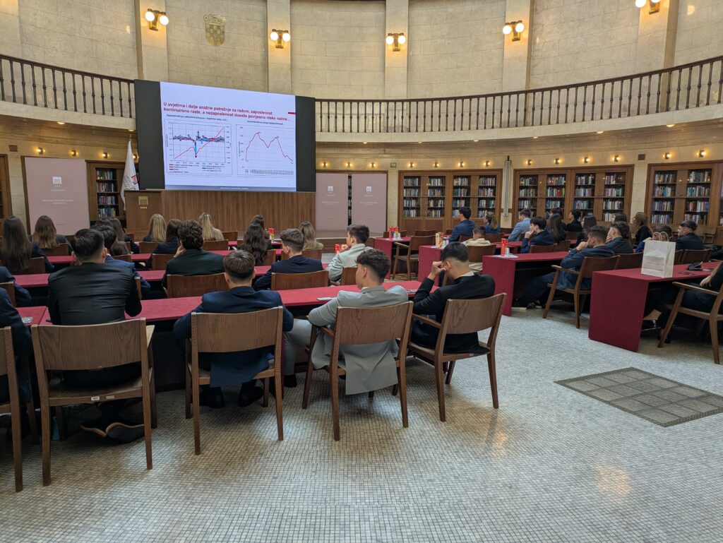 Svi su učenici bili primjereno i poslovno odjeveni, što je pridonijelo ozbiljnosti i profesionalnom ugođaju samog događanja. U ugodnoj smo atmosferi slušali o aktualnim ekonomskim temama – ponajprije o inflaciji, njezinim uzrocima i posljedicama, kao i o porastu i padu primanja građana u različitim gospodarskim sektorima.