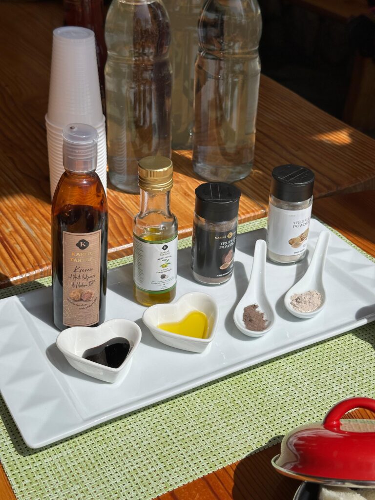 Edukativni dio upotpunjen je degustacijom raznih proizvoda s tartufima. Učenici su imali priliku kušati ulja, aceto balsamico, kokice te posebno zanimljive slatke proizvode poput namaza od bijele i crne čokolade s tartufima. Time su otkrili kako se tartufi koriste u širokom spektru proizvoda – od sireva i kobasica do čokolada i likera.