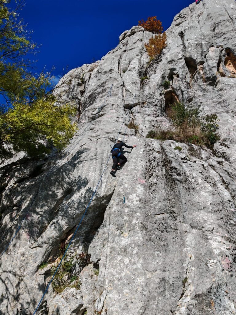 Sljedeći dan bio je u znaku penjanja i spuštanja niz stijenu. Ta je aktivnost kod učenika izazvala i uzbuđenje i strah. Posebno se istaknula Ema Polić, jedina učenica koja se i popela na stijenu i spustila niz nju, i pri tome pokazala hrabrost i odlučnost. Nakon penjanja na stijenu, učenike je čekao posljednji izazov tog dana – održavanje vatre tijekom noći. Možemo se pohvaliti da su obje grupe učenika uspješno održale plamen i time simbolički sebi osvijetlili put u budućnost!