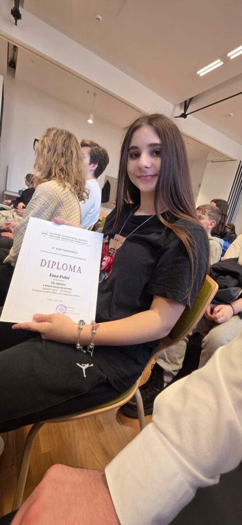 Naše učenice ostvarile su vrijedno iskustvo i dobre rezultate. Ema Polić plasirala se na 16. mjesto s rezultatom od 179,1 neto znakova u minuti (u desetominutnom prijepisu), čime je ostvarila vrlo solidan rezultat, posebno uzimajući u obzir da je ovo prvi nastup naše škole na ovom natjecanju. Ira Piljek također je dostojno predstavljala školu, stekavši važno natjecateljsko iskustvo koje će joj zasigurno koristiti na budućim natjecanjima.